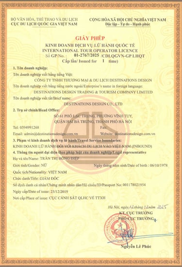 Destinations Design is a leading Destination Management Company (DMC) in Vietnam, founded with the mission of delivering unique and memorable travel experiences across the country. We take pride in offering high-quality services that emphasize distinction and sophistication in every itinerary we craft.