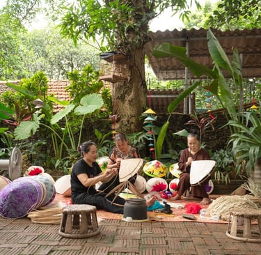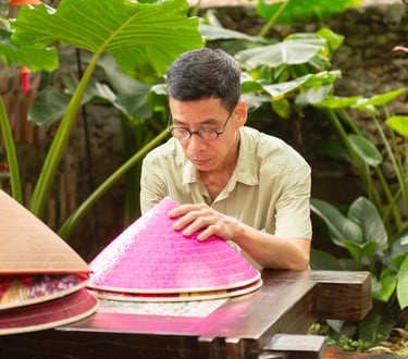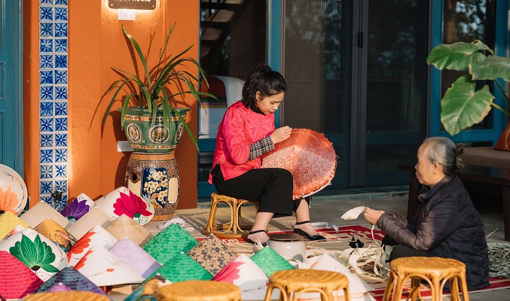 While some traditional crafts are slowly fading away, others are being reimagined in new settings – not only preserved but shared with visitors in an authentic, interactive way. One of the most symbolic Vietnamese crafts is the conical hat (nón lá). The nón lá is not only a tool for shielding from sun and rain, but also a cultural symbol deeply rooted in the Vietnamese spirit. Shaped by the skillful hands of artisans, this simple conical hat reflects the beauty of diligence, grace, and charm.
