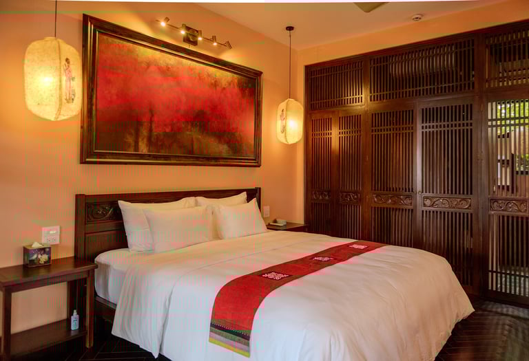 TRẦM intentionally offers just four main guest rooms, accommodating a maximum of 10 guests per night, to ensure an intimate and private experience. Each room is fully equipped with carefully selected amenities and furnishings, meeting the exacting standards of a five-star resort.